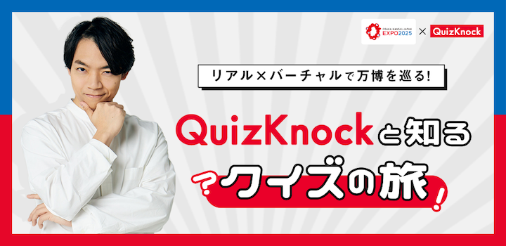 QuizKnockが公益社団法人2025年日本国際博覧会協会協力のもと、大阪・関西万博 夢洲会場とバーチャル万博でクイズを楽しむことができる「リアル×バーチャルで万博を巡る!QuizKnockと知るクイズの旅」を8月23日(土)から10月13日(月)までの期間限定で開催します!